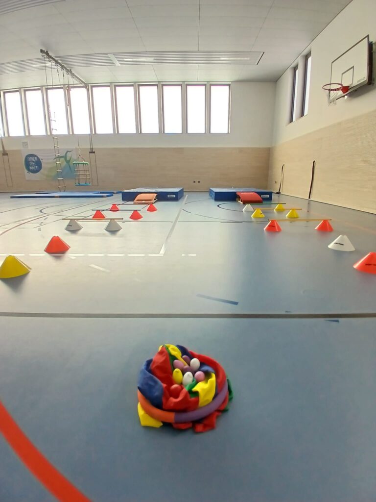 In der letzten Kinderturnstunde vor den Osterferien drehte sich alles rund um das Thema Ostern. Die Kinder hatten großen Spaß bei einem abwechslungsreichen „Ostereierlauf“-Parcours. Mit viel Geschick balancierten sie ihre Eier durch verschiedene Stationen und meisterten dabei kleine Herausforderungen.