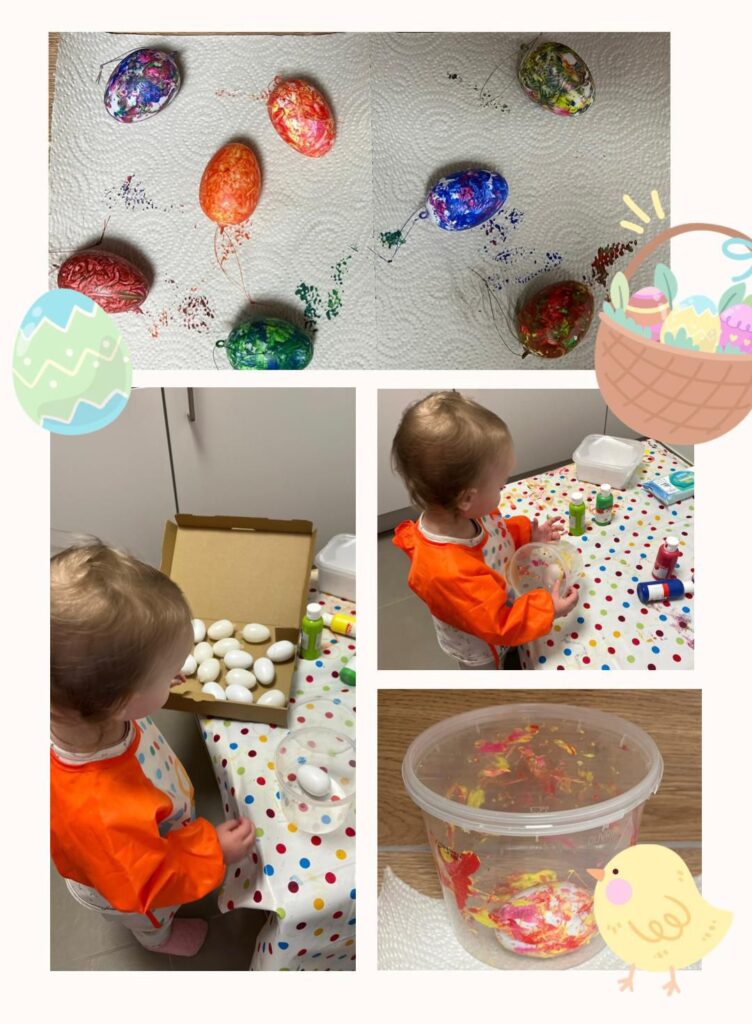 In der Osterstunde der Krabbelgruppe konnten die Kinder ihrer Kreativität freien Lauf lassen: Jedes Kind färbte ein Ei und gestaltete es ganz individuell. Dabei entstanden viele bunte und einzigartige Ostereier 🎨🥚